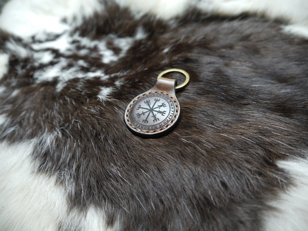 Vegvísir ten, co ukazuje cestu je islandský magický symbol vyrytý v kožené klíčence.