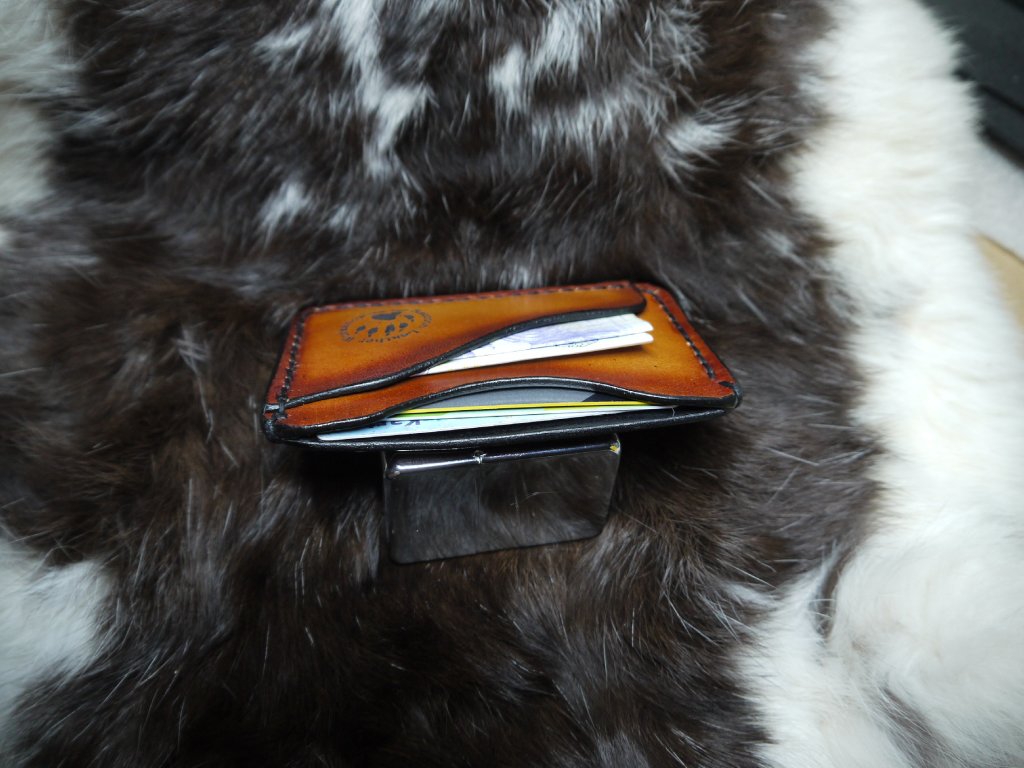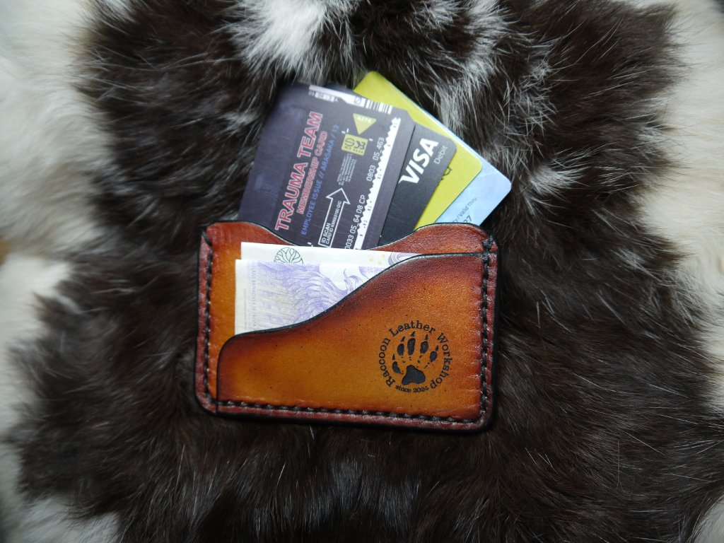 Peněženka je ručně vyrobená z kvalitní hovězí kůže, sešitá voskovanou nití průměru 1 milimetr