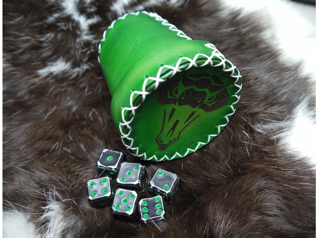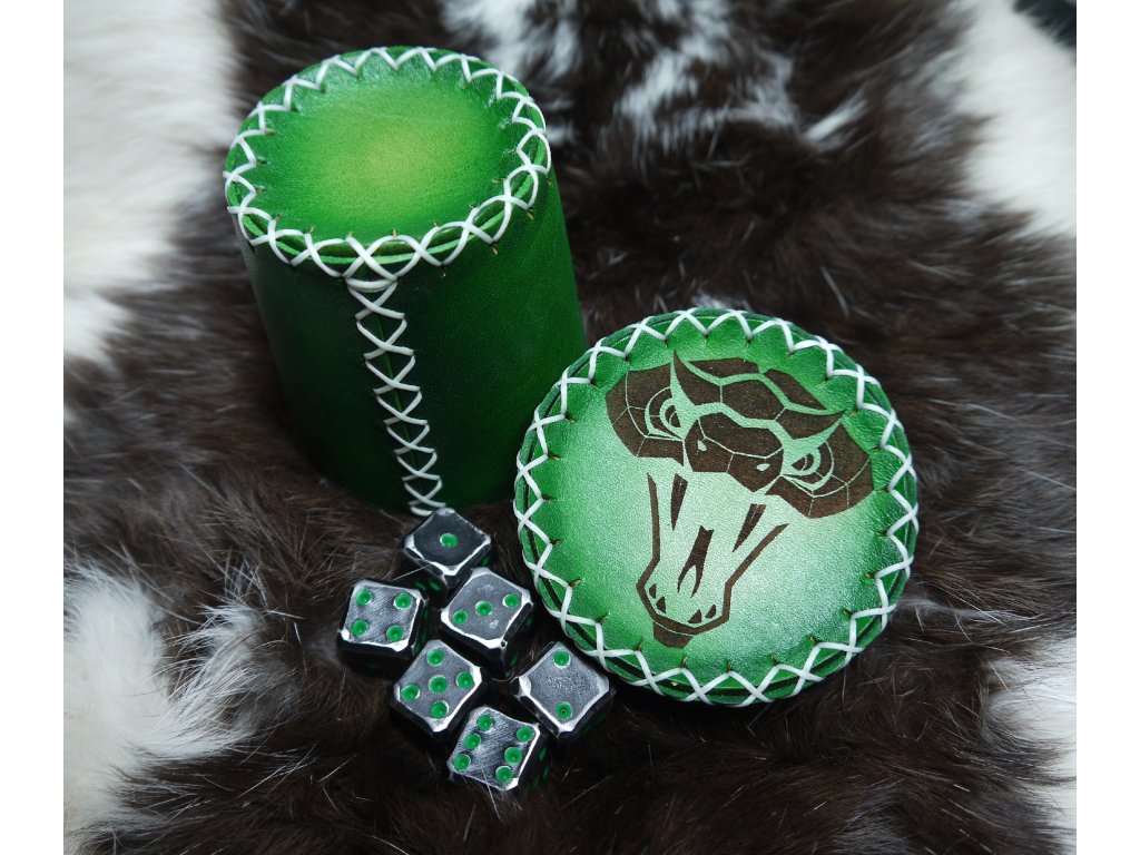 Sada kovaných kostek a koženého kelímku - Zmije
